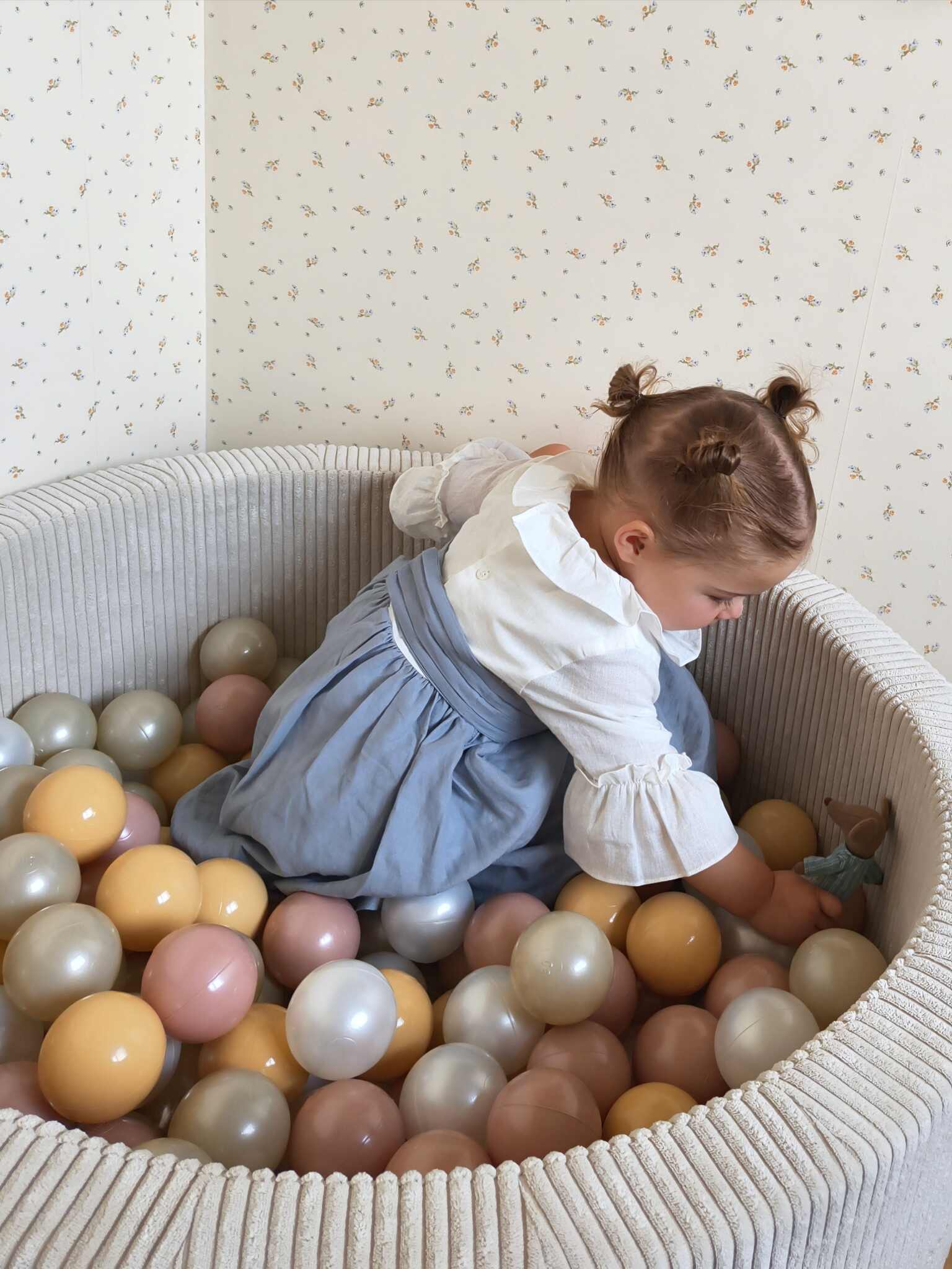 Mimii: Suchy basen Sztruks Grafit + Piłeczki: przezroczyste, białe, szare, błękitne